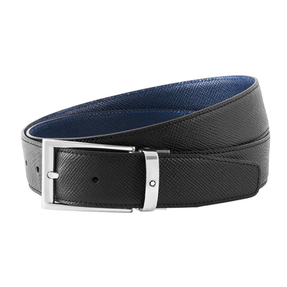 Двусторонний ремень из кожи черного и синего цвета 35 мм от магазина премиальных ручек Premium Pens в Евпатории.